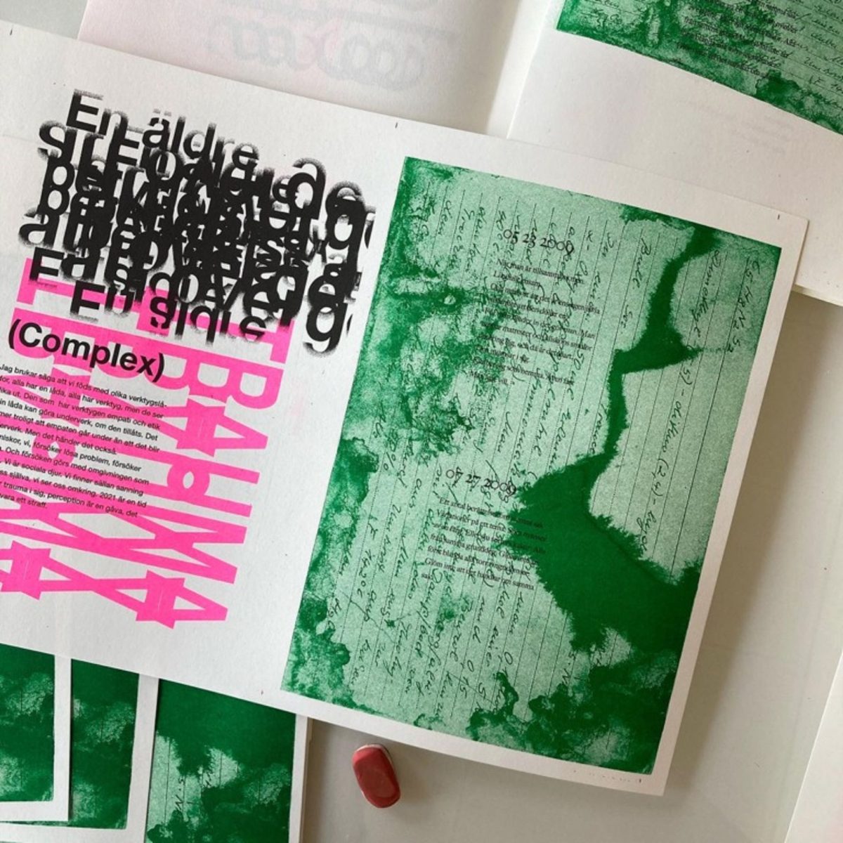 Form och rytm – skapa utan prestationskrav. Vi målar med bläck och pennor och klipper former och mönster i papper och gamla tidningar. Skapar tryckoriginal i kollageteknik till ett vykort eller en affisch. Vi jobbar i två lager – ett för varje tryckfärg. Sedan scannar vi in dina original och trycker i två häftiga färger på risografen. Vad sägs om fluorescerande rosa och aquablå?Du bestämmer om du vill jobba med en affisch att hänga på väggen eller göra ett vykort till någon. Är du riktigt peppad kan du också få göra din egen berättelse eller serie och vika till ett mini-zin.